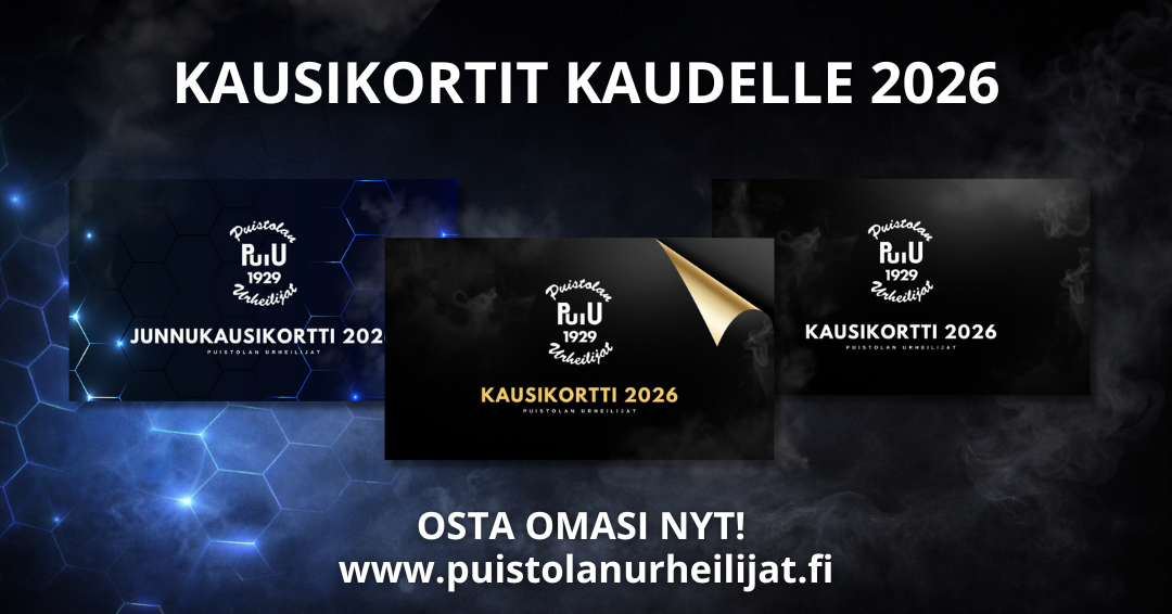 Puistolan Urheilijoiden Miesten edustusjoukkueen kausikortit kaudelle 2026 ovat NYT myynnissä! Tue miesten edustusjoukkuetta koko kauden ajan ja varmista paikkasi katsomossa! Kausikortti – 60 € VIP-kausikortti – 100 € Junnukausikortti – 30 € Kausikortit ovat voimassa Puistolan Urheilijoiden Miesten edustusjoukkueen kotiotteluissa kaudella 2026. (Miesten Kakkonen, Suomen Cup) BONUS!Ensimmäiset 50 kausikortin ostajaa saavat miesten edustusjoukkueen kausijulisteen 2025! […]
