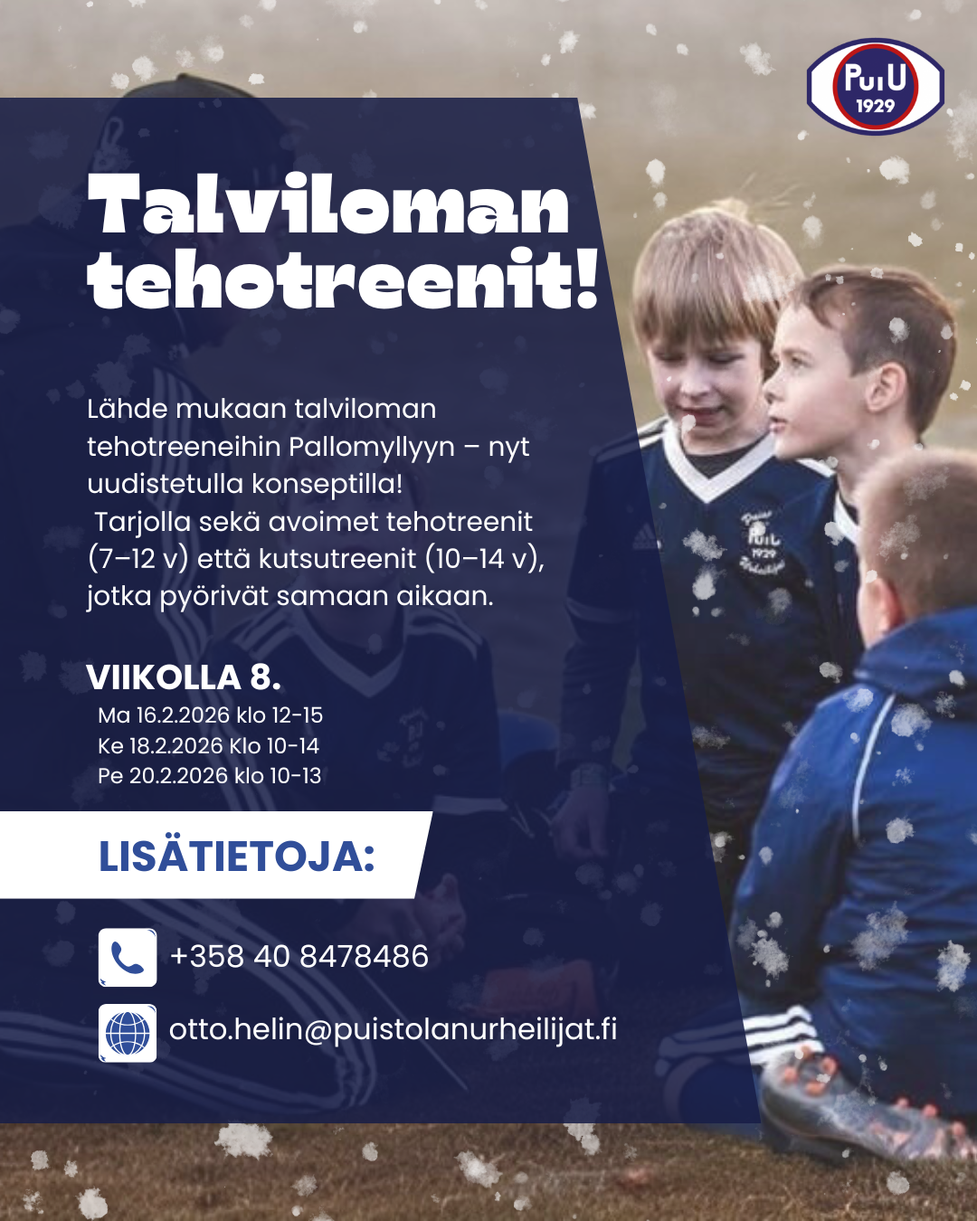 ❄️ Talviloman kovimmat treenit ovat täällä! ❄️ Lähde mukaan talviloman tehotreeneihin Pallomyllyyn – nyt uudistetulla konseptilla!Tarjolla sekä avoimet tehotreenit (7–12 v) että kutsutreenit (10–14 v), jotka pyörivät samaan aikaan. 🔥 Avoimet tehotreenit 🔥 Kutsutreenit 📍 Paikka: Pallomylly, Pikajuoksijankuja 9🗓 Ajankohdat: 🍎 Mukaan kannattaa pakata pientä evästä – tarjoamme myös pienen välipalan. ⚠️ Molempiin treeneihin mahtuu […]