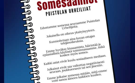 Puistolan Urheilijoiden somesäännöt 📝 Seura toivoo kaikkien seuran jäsenten, toimihenkilöiden ja muiden kannattajien kunnioittavan näitä sääntöjä sosiaalisessa mediassa toimiessaan. 📌 Edustamme somessa seuraamme Puistolan Urheilijoita.Päivityksissä näkyy meidän iloinen ja positiivinen joukkuehenki, urheilullisuus ja yhteisöllisyys, joka edistää seuramme positiivista mielikuvaa. 📌 Jokaisella on oikeus yksityisyyteen.Joukkueen jäsenten kuvia tai tietoja ei saa […]